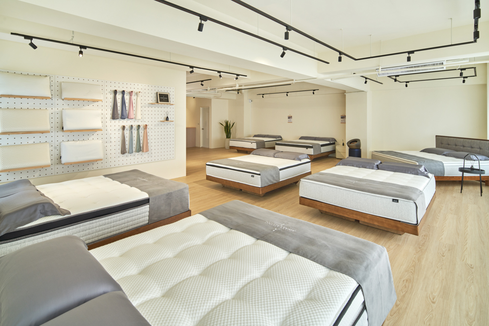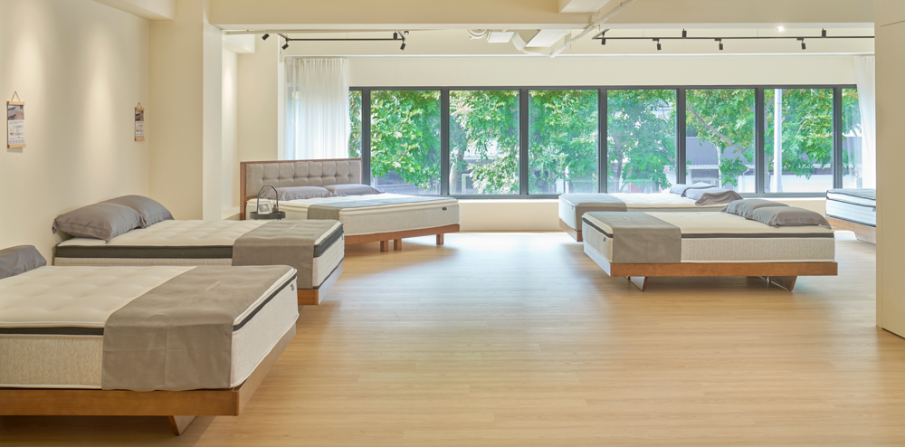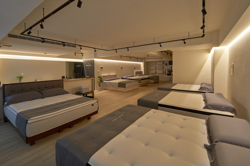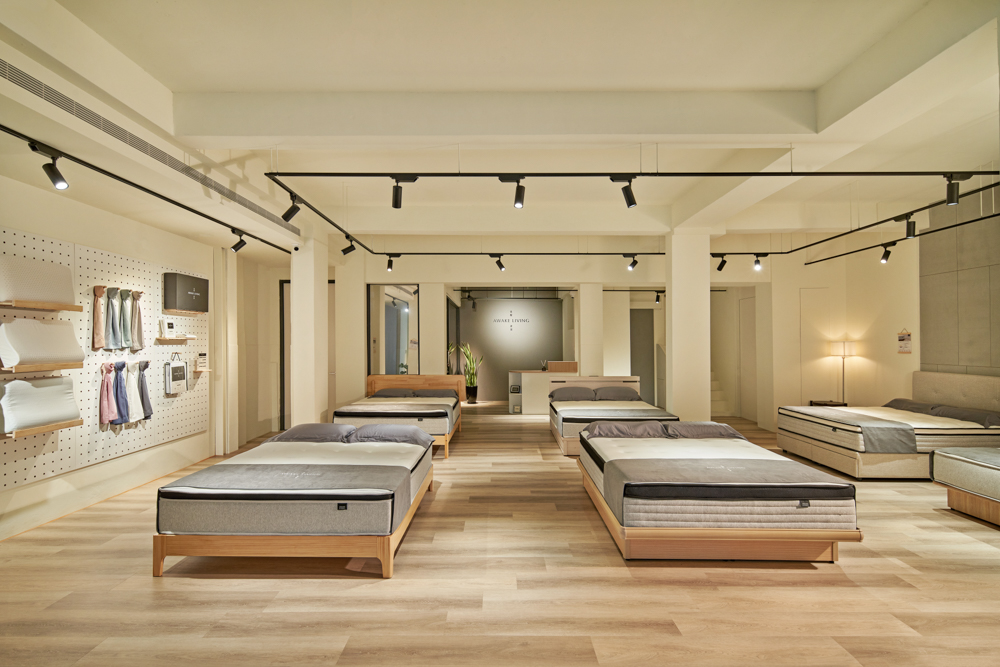 走進覺醒家居 Awake Living 門市,寬敞明亮的空間與柔和色系的裝潢讓人感到十分放鬆,讓來訪的顧客可以專注在各式床墊的挑選試躺。