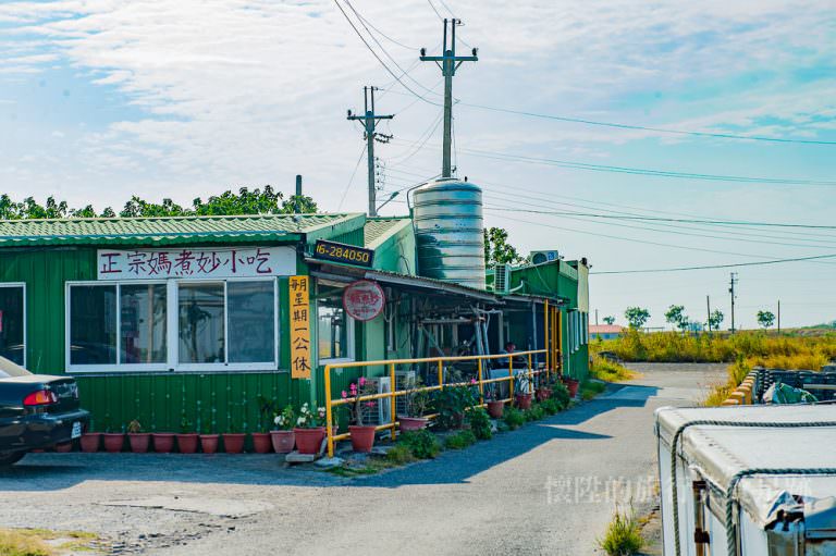 ↑正宗媽煮妙小吃的店面,一間充滿飽和色彩的鐵皮屋,掛著手工訂製招牌,是最在地的鄉村小館。